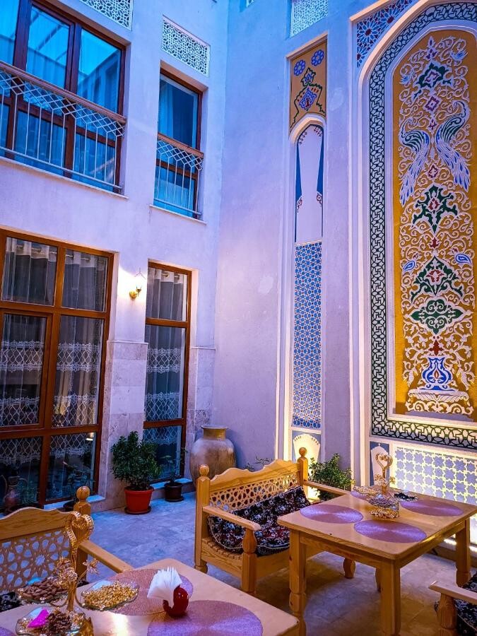 Встречаем вас в аэропорту города Ургенч, едем заселяться в отель в самом центре Хивы. Все вместе обедаем - знакомимся с национальной кухней и друг с другом, обсуждаем путешествие.